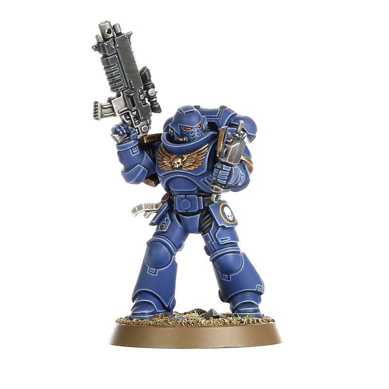– 1 Штурмовий Сержант Прімарисів у броні Mk X і з ударною гвинтівкою і гранатами;