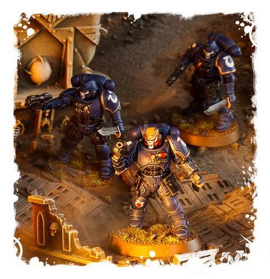 – 1 Сержант Прімарисів-Розбійників у броні Mk X і з важким ударним пістолетом, бойовим клинком і гранатами;