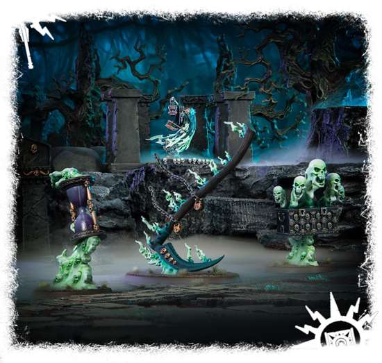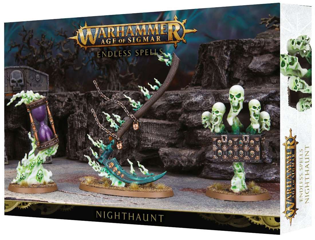 Комплектація набору «Warhammer Age of Sigmar: Endless Spells: Nighthaunt»: – 16 компонентів для зборки 3-х мініатюр (Жнець Шайіша (Shyish Reaper), Сховище Душ (Vault of Souls), Морталіс Термінексус (Mortalis Terminexus));