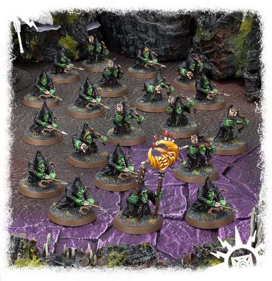 Увага! Мініатюри в коробці постачаються не зібрані та не пофарбовані. Процес розфарбовування мініатюр – достатньо цікава та захоплива справа для багатьох шанувальників настільних ігор з мініатюрами та колекціонерів. Для якісного розфарбовування Ваших мініатюр в нашому магазині наявний широкий асортимент спеціальних фарб та необхідного інвентарю відмінної якості. Також, крім необхідної інформації для гри, ви знайдете всеохоплюючий опис всесвіту Ери Сігмара в Базовій Книзі Правил або детальний опис фракції в Кодексі Мерзенних Поганців. У цих книгах також наведені зразки колірних схем та відмінно пофарбованих мініатюр фракції, які можна використати, як джерело натхнення для розфарбовування та створення власних коллекційних шедеврів. Приклади розфарбованих гравцями мініатюр можна побачити нижче: