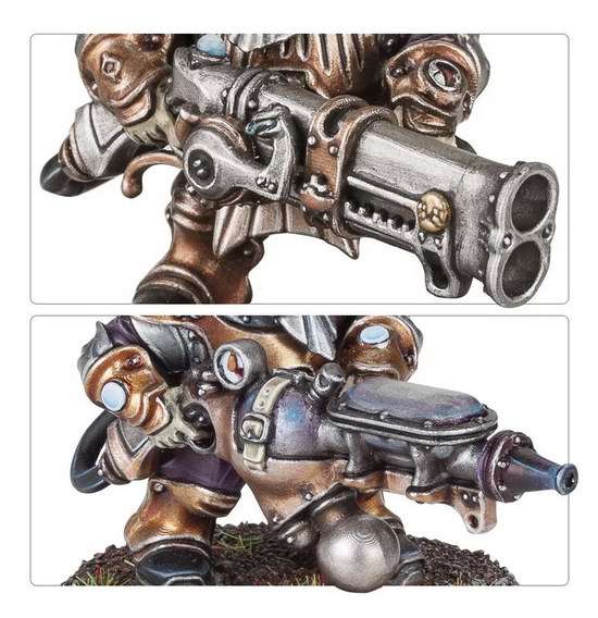 - Кожен озброєний ефірстрільною гвинтівкою, а також особливо товстою зброєю типу ефірного випаровувача (aetheric fumigator), мортири Грундсток (Grundstok mortar) з додатковими ядрами або ефірної гармати (aethercannon) настільки потужної, що дуардін, що її несе, потребує захисту від ударної хвилі. Також 5-ствольна рушниця, відома як Підмітач (Decksweeper);