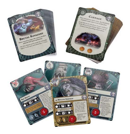– 60 унікальних карт для гри в Warhammer Underworlds: Nightvault, розділених на: