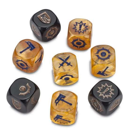 Комплектація набору «Warhammer Underworlds: Nightvault – Набір Кубиків Stormsire's Cursebreakers»:8 шестигранних кубиків: