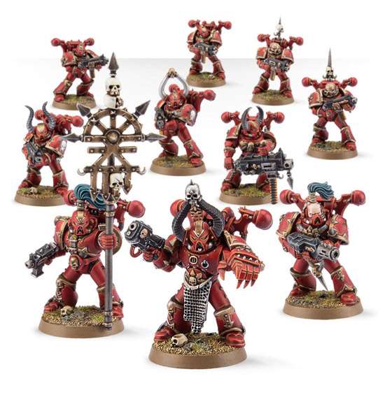 Комплектація набору «Warhammer 40000. Chaos Space Marines Squad»:– деталі для зборки 10 мініатюр Космодесантників