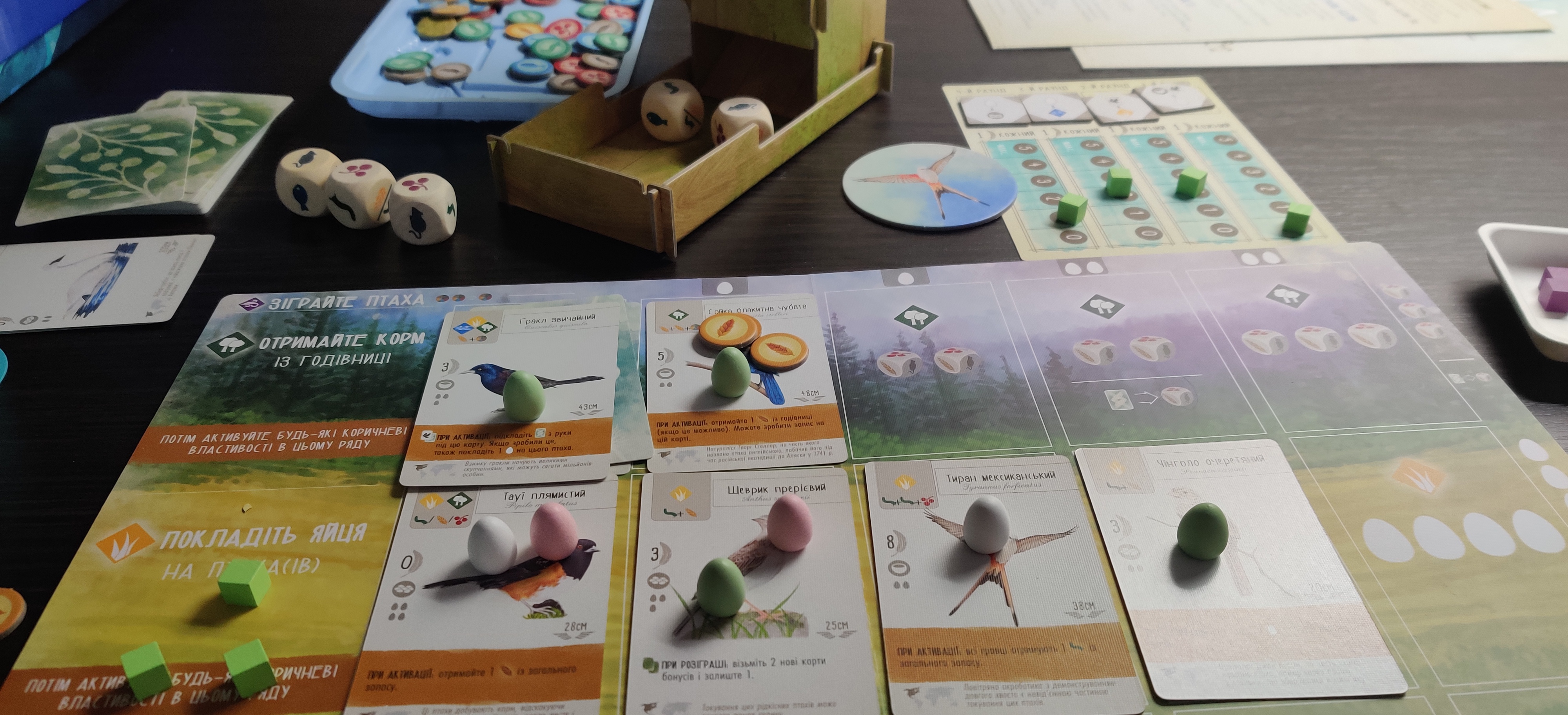 А щоб й надалі не зупинятися грати та урізноманітнити гру пропонуємо додати до неї доповнення: Крила: Птахи Азії або Крила: Птахи Європи;)