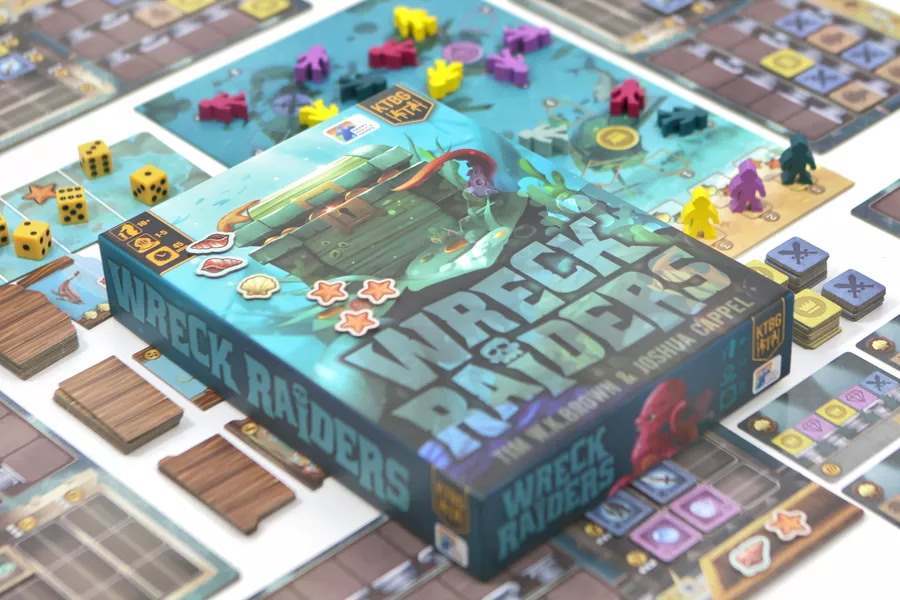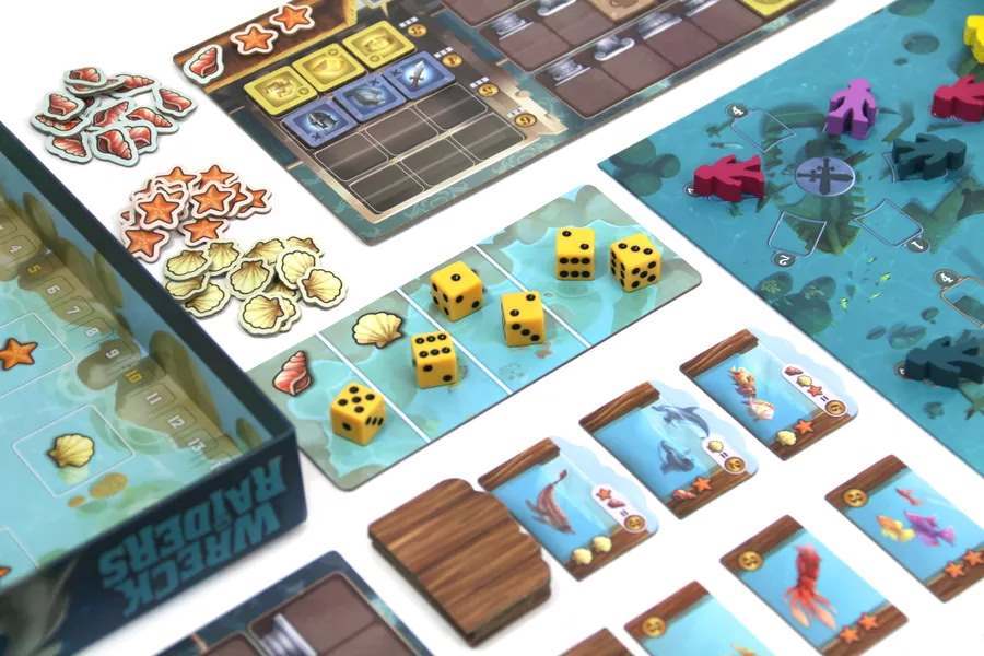 Wreck Raiders – сімейна настільна гра, де ви побуваєте в ролі морських мисливців за скарбами та разом з ними занурюватиметеся на дно океану, щоб дістатися до уламків кораблів та шукати скарби. А ще потрібно гуляти по пляжу та збирати черепашки))