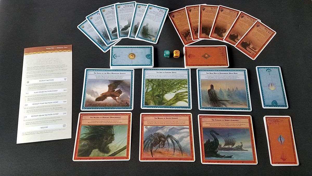 War of the Ring: Warriors of Middle-earth вам потребуется часть событий из базовой игры, связанных с упомянутыми Фракциями заменить на новые, а также сформировать колоду Событий Фракций отдельно.