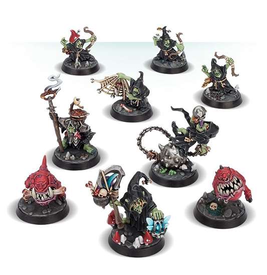 Комплектация настольной игры "Warhammer Underworlds Nightvault: Поганцы Зарбага": – 9 миниатюр гротов