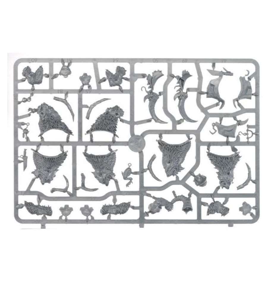 Комплектация набора «Warhammer Age of Sigmar: Beastclaw Raiders Mournfang Pack»:- компоненты на пластиковой рамке для сборки 4 миниатюр Mournfang;