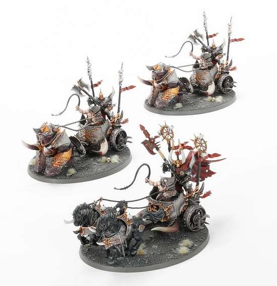 - 222 детали на пластиковой рамке для сборки 3 Колесниц Хаоса (Chaos Chariot) или 3 Чудовищных Колесниц (Gorebeast Chariots);