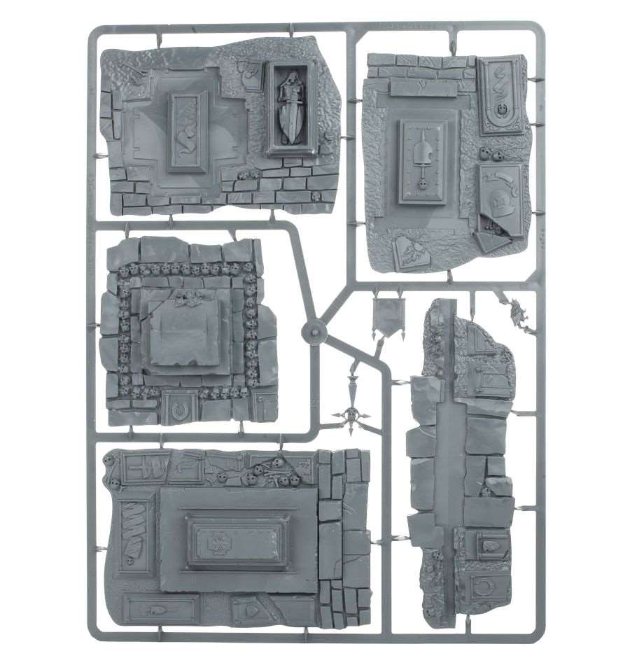 Внимание! Для использования данного набора Вам потребуется книга Книга правил Warcry или Warcry Core Book (eng)Комплектация набора «Warhammer Age of Sigmar. Warcry: Ravaged Lands. Corpsewrack Mausoleum»: