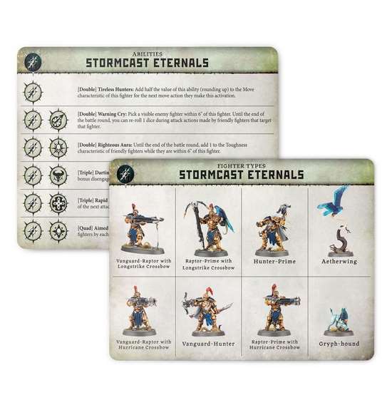 Комплектация набора «Warhammer Age of Sigmar. Warcry: Stormcast Eternals Card Pack»: –Карты способностей на нескольких языках, включая русский ; – Несколько карт бойцов и карт-разделителей для отслеживания жетонов состояния.