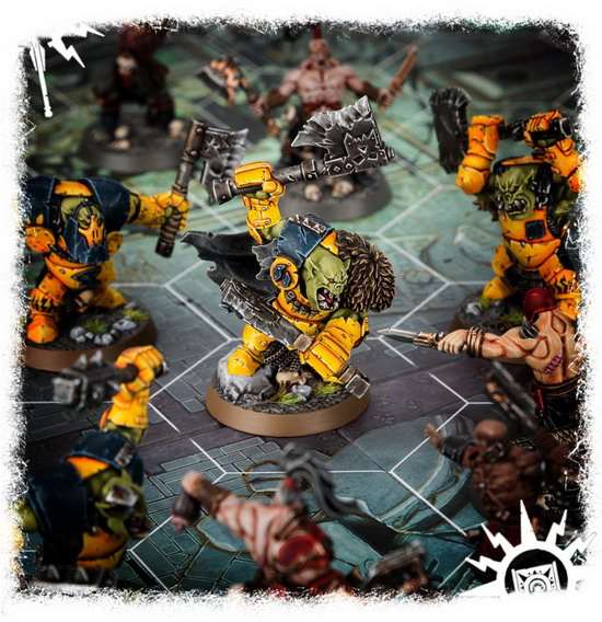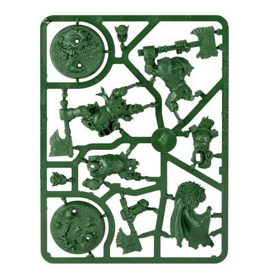 – 4 зелёные сборные пластиковые миниатюры Orruk: Basha, Hakka, Bonekutta и Gurzag Ironskull;