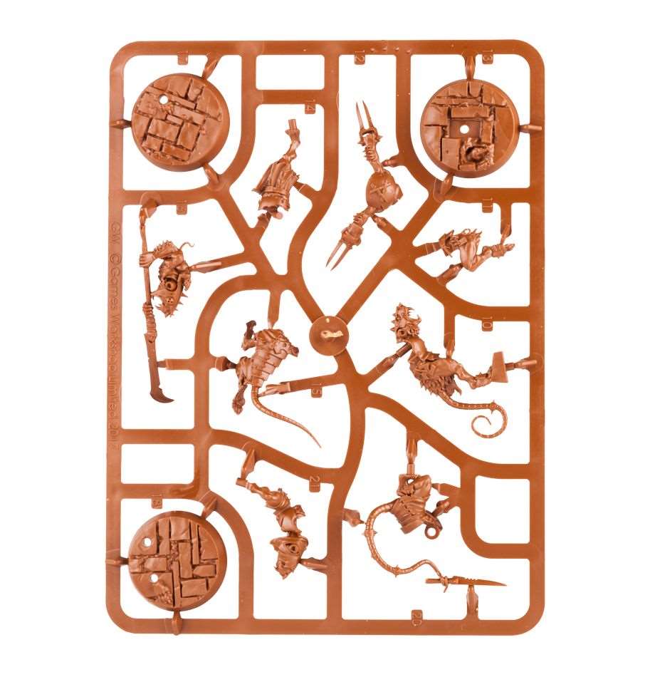 – 5 коричневых сборных пластиковых миниатюр Skaven: Skritch Spiteclaw, Krrk the Almost-Trusted, Lurking Skaven, Hungering Skaven и Festering Skaven;