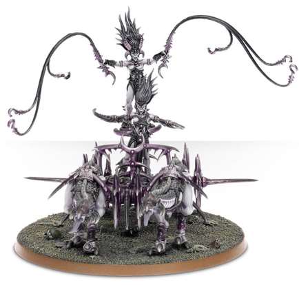 Комплектация набора «Warhammer 40000: Chaos Daemons: Seeker Chariot of Slaanesh»: – необходимые компоненты для сборки миниатюры;