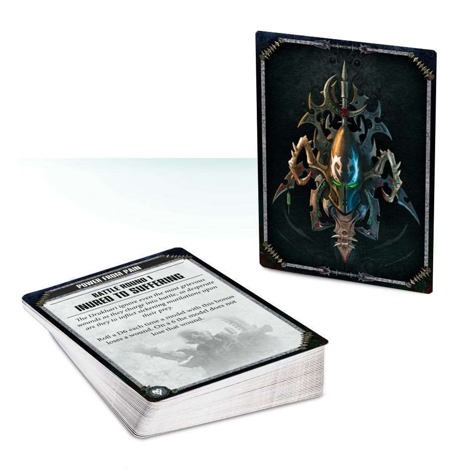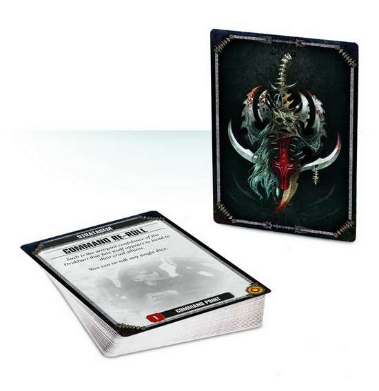 – 33 стратагемы, уникальных для армии Друкхари, а также 3 основных стратагемы (Command Re-roll, Counter-Offensive, Insane Bravery);