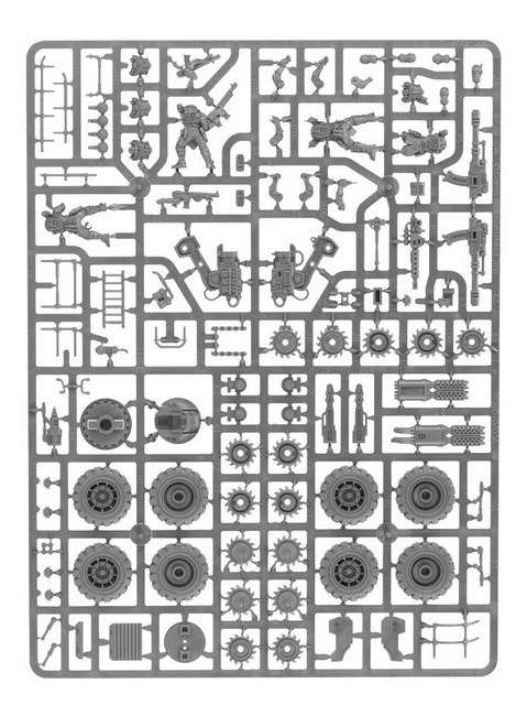 – компоненты на пластиковых рамках для сборки одной миниатюры Goliath Truck или Goliath Rockgrinder с различным вооружением и 4 членами экипажа с разными опциями также и для них;
