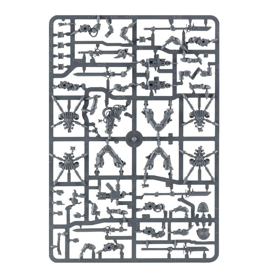 – 236 компонентов в пластиковых рамках для сборки 10 миниатюр Серых Рыцарей, которых также можно собрать, как Grey Knight Interceptor Squad, Grey Knight Purifier Squad или Grey Knight Purgation Squad;
