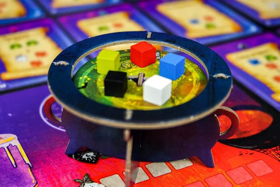 В настольной игре Ведьмин круг мы будем учиться правильно варить зелье. И все было бы просто, но нужно еще избавиться от конкурентов, подсунув им лишние компоненты в котел, а также следить за тем, чтобы ваш котел не взорвался от избытка магической силы.