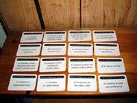 Остальные игроки создают свои предполагаемые вариации компонентов, а ведущий затем отмечает белыми и черными фишками их соответствие задуманному. Игра продолжается пока один из участников не догадается об установленном правиле.