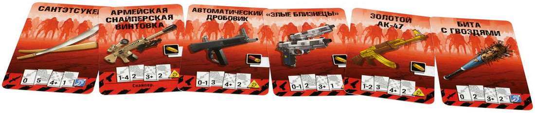 - 88 фигурок (12 выживших и 76 зомби четырех разных типов),